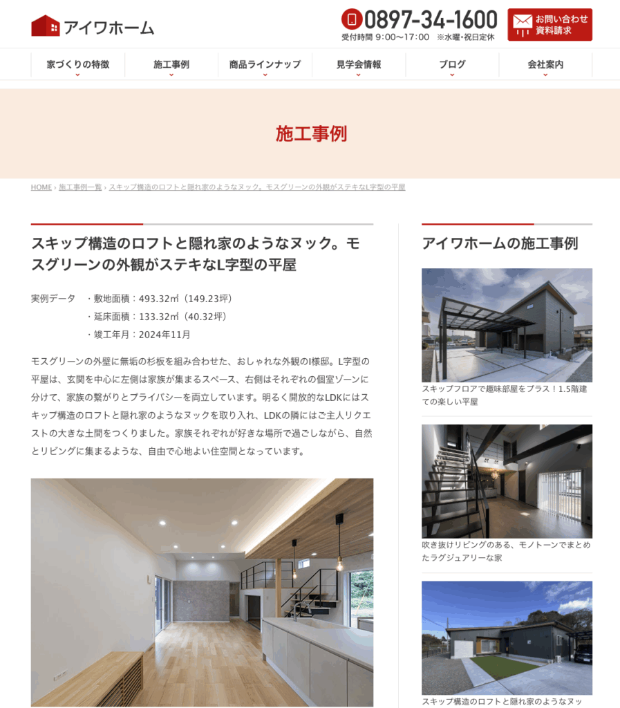 新居浜市内の戸建て施工事例写真を主に撮影させていただいております。個性的かつリーズナブルな住宅を多く手がけられています。